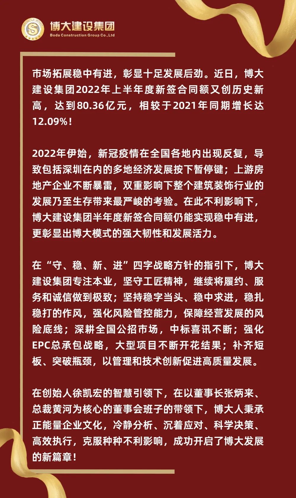 博大建設集團:2022年上半年度新簽合同額穩中有進