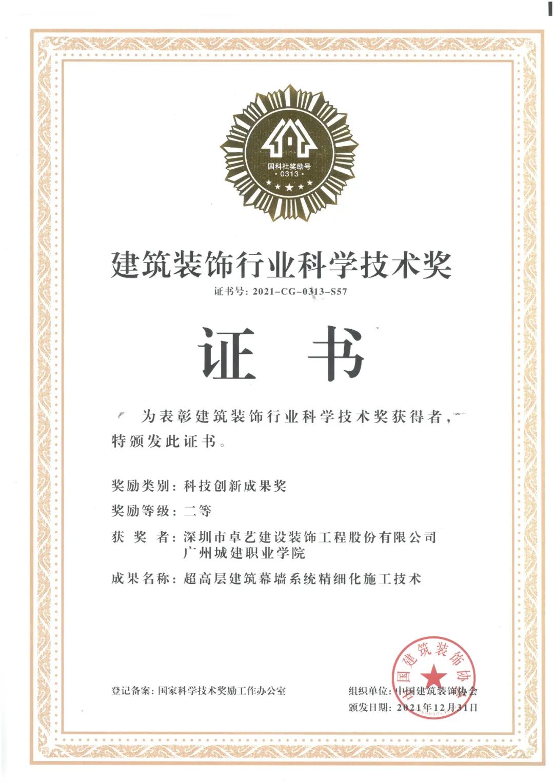 建筑裝飾行業(yè)科學(xué)技術(shù)獎(jiǎng)