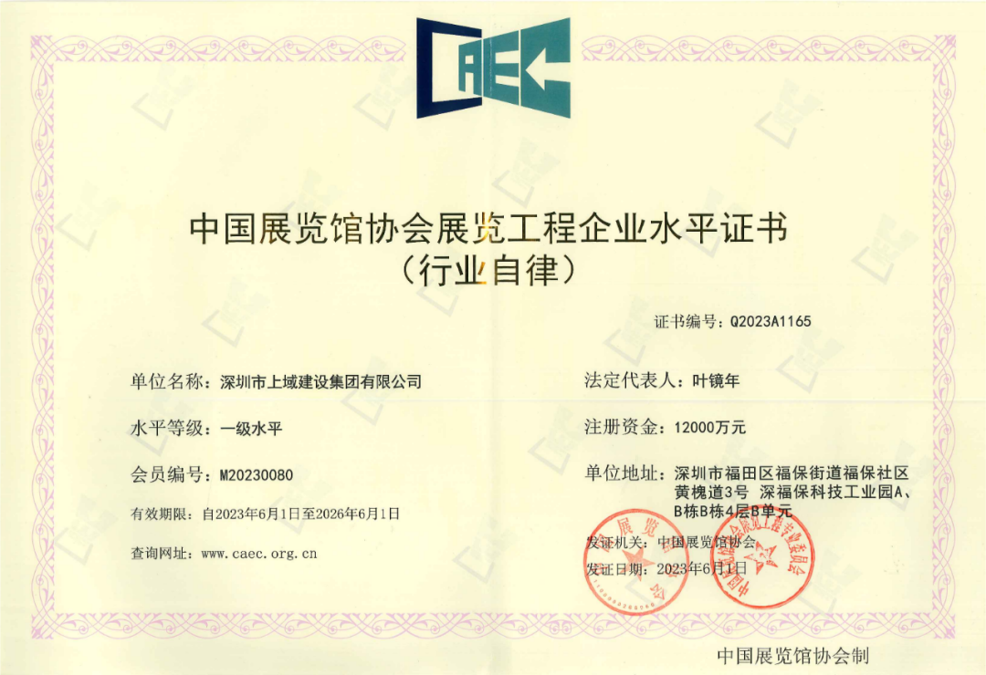 新資質的獲得,代表的是中國展覽館協會對上域建設集團設計與施工能力的認可,對于進一步擴大企業品牌影響力、提升企業競爭力有著重大意義,為打造企業一系列展覽精品工程提供強有力的支撐和保障。