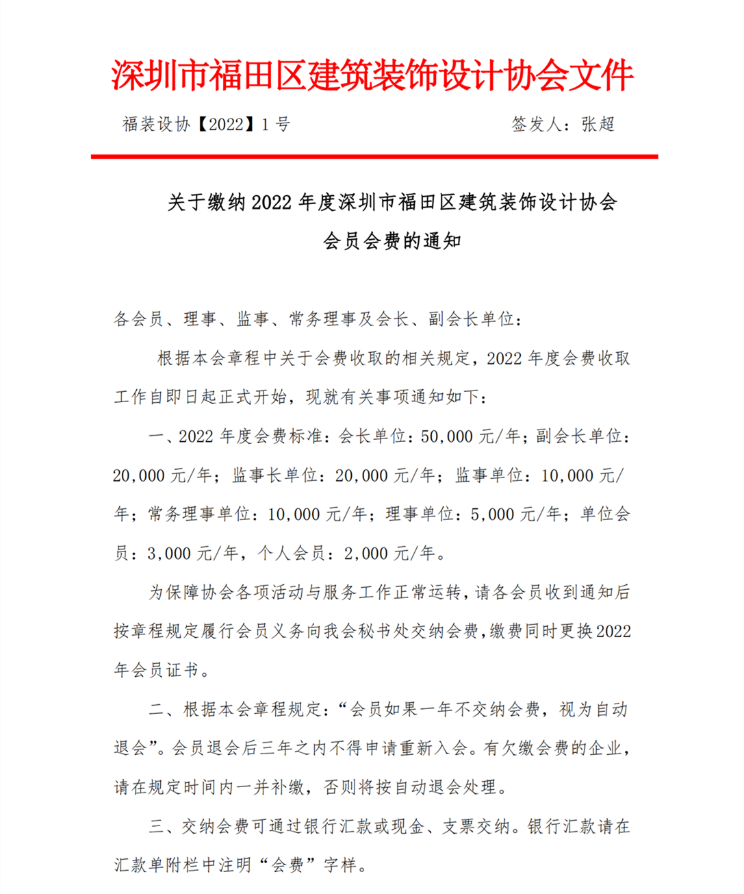 關(guān)于繳納2022年度深圳市福田區(qū)建筑裝飾設(shè)計(jì)協(xié)會(huì)會(huì)員會(huì)費(fèi)的通知