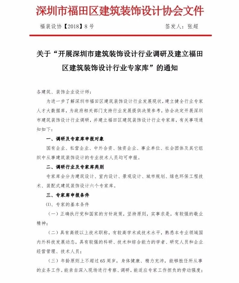 關(guān)于“開展深圳市建筑裝飾設(shè)計行業(yè)調(diào)研及建立福田區(qū)建筑裝飾設(shè)計行業(yè)專家?guī)臁钡耐ㄖ?/div>
