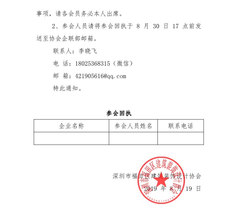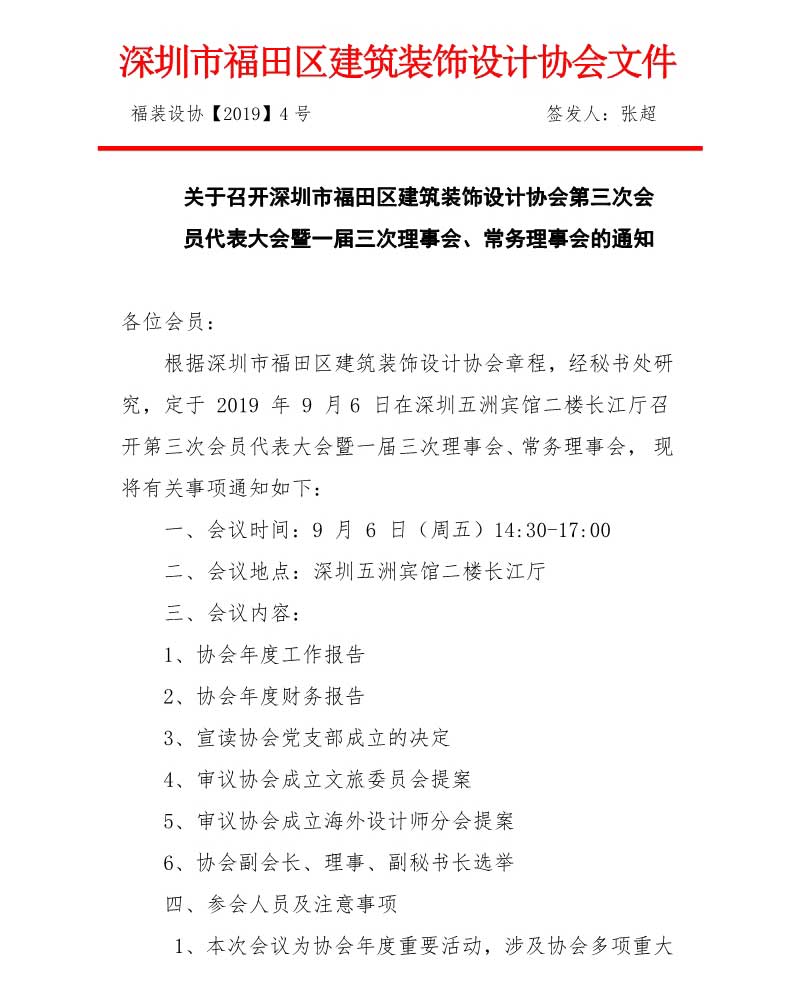 關于召開深圳市福田區建筑裝飾設計協會第三次會員代表大會暨一屆三次理事會、常務理事會的通知